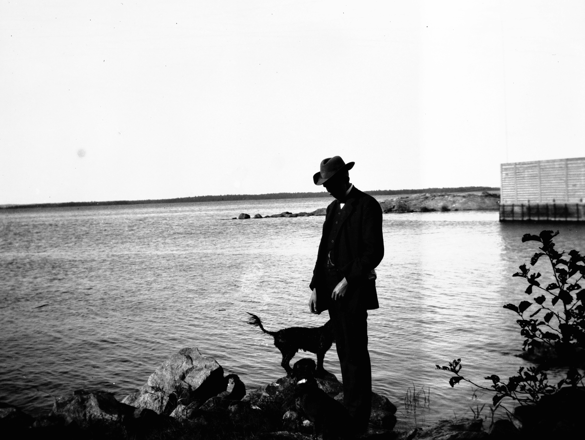 Man med sin hund vid Furuskär.