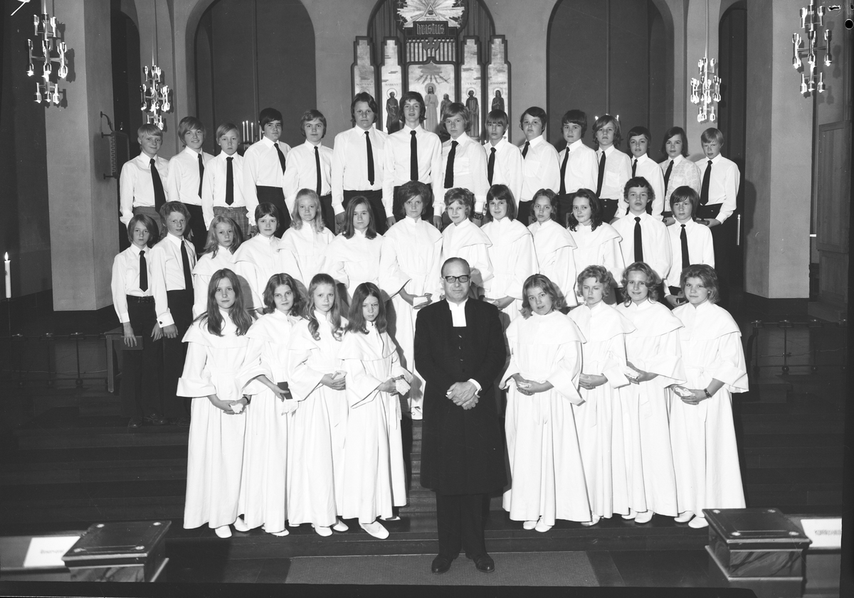Prästen Appelgård med konfirmationsgrupp i Staffans kyrka, Brynäs