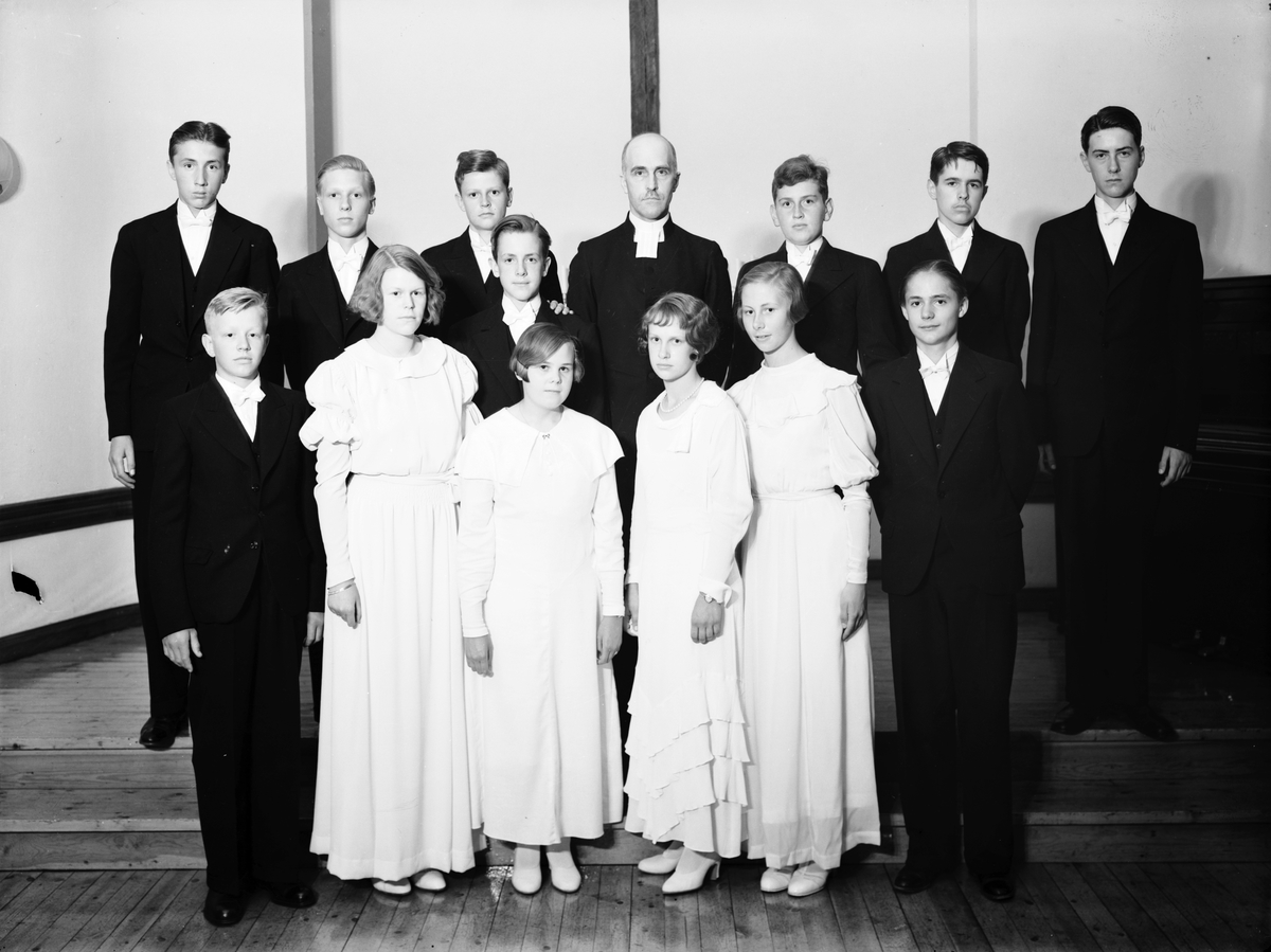 Kyrkoherde Janzon med läsbarn. Den 25 juli 1935.