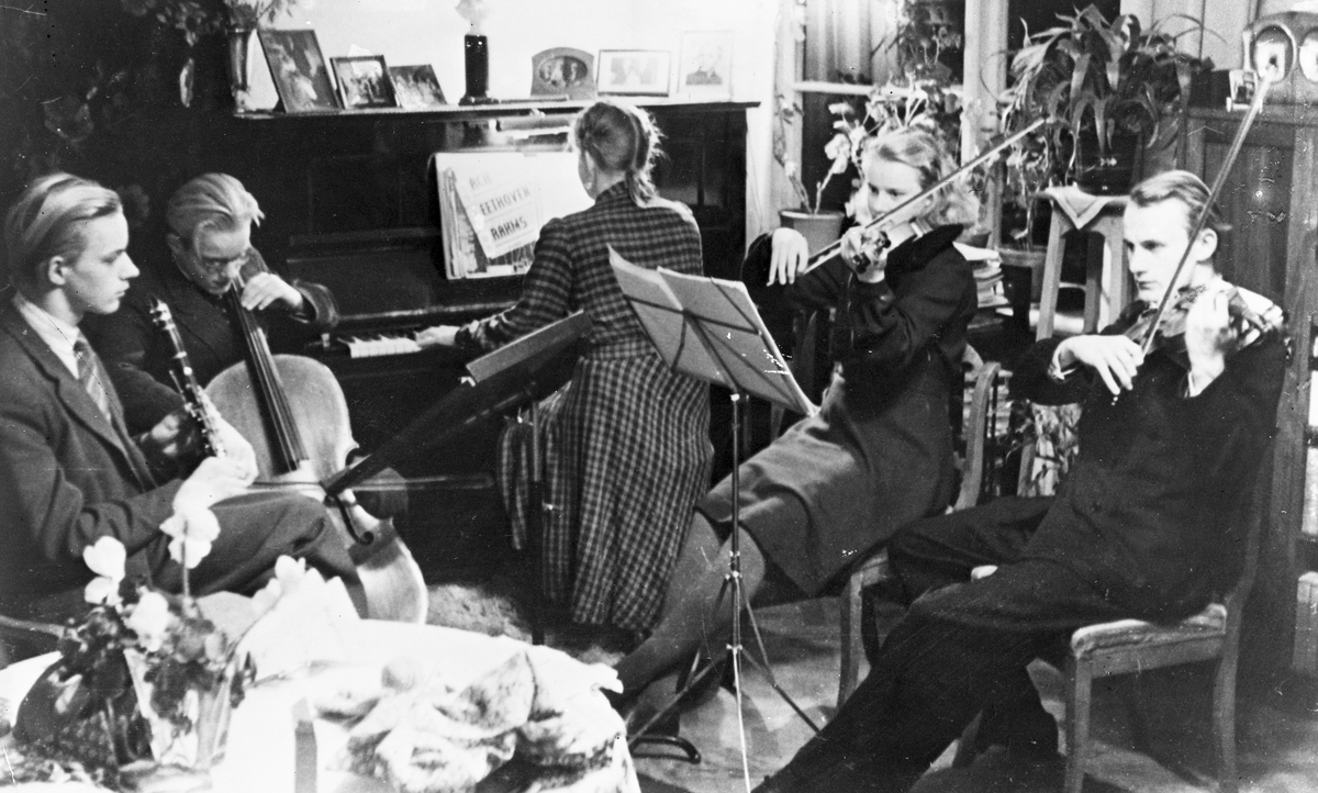 Ungdomar spelar piano, fiol, klarinett och bas. Härdelin