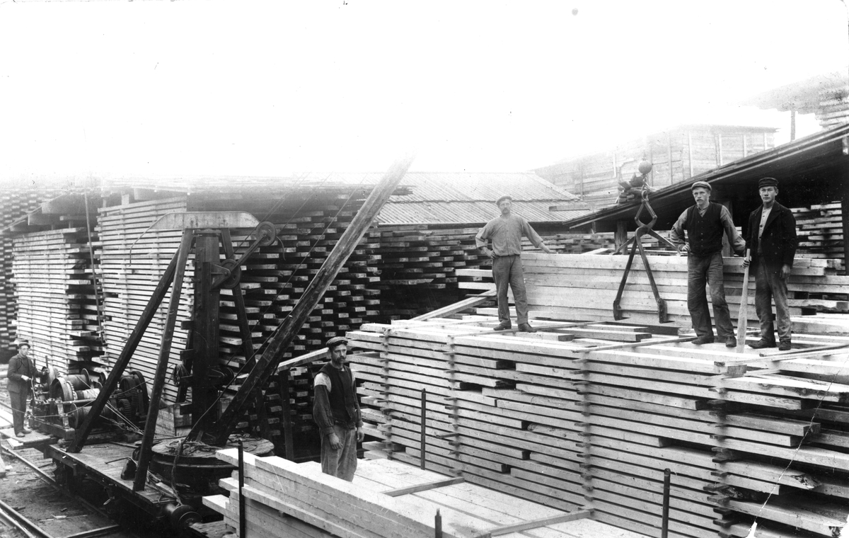 Virkesmagasinet, sågverket. Kopia. Korsnäs AB. Den 25 juli 1955.