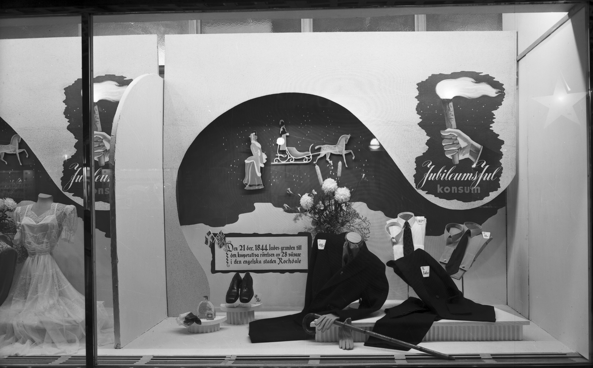 Konsum Alfa Varuhuset. Skyltfönstertema "Jubileum 24 december 1944"