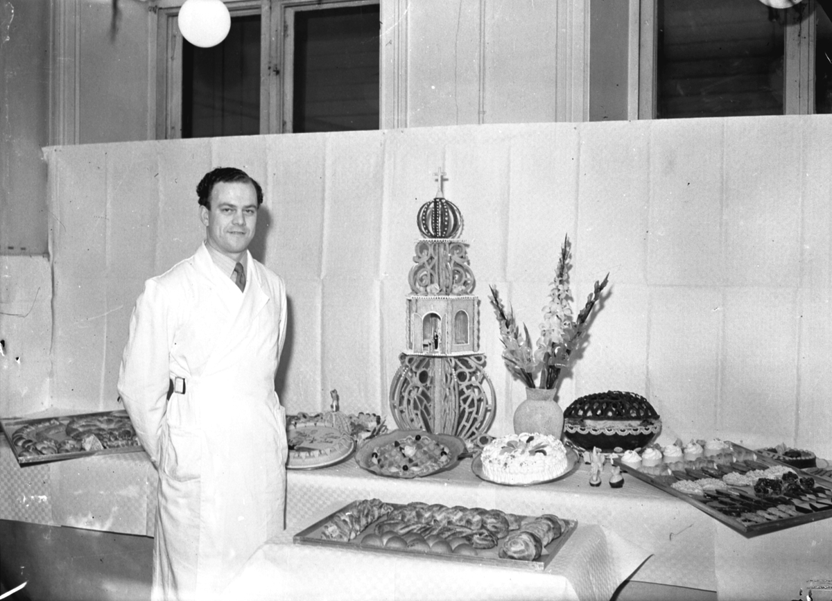 Rune Bohman vid Diethelms Konditori. Gesällprov. Reportage för Norrlands-Posten.