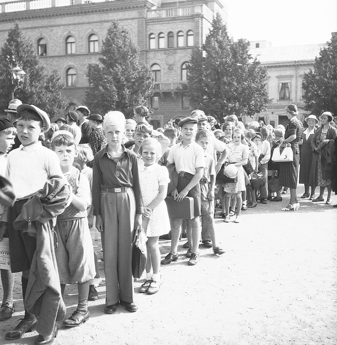 Den 23 juli 1938. Barnutflykt till Furuvik från Stora Torget i Gävle. Reportage för Gefle-Posten