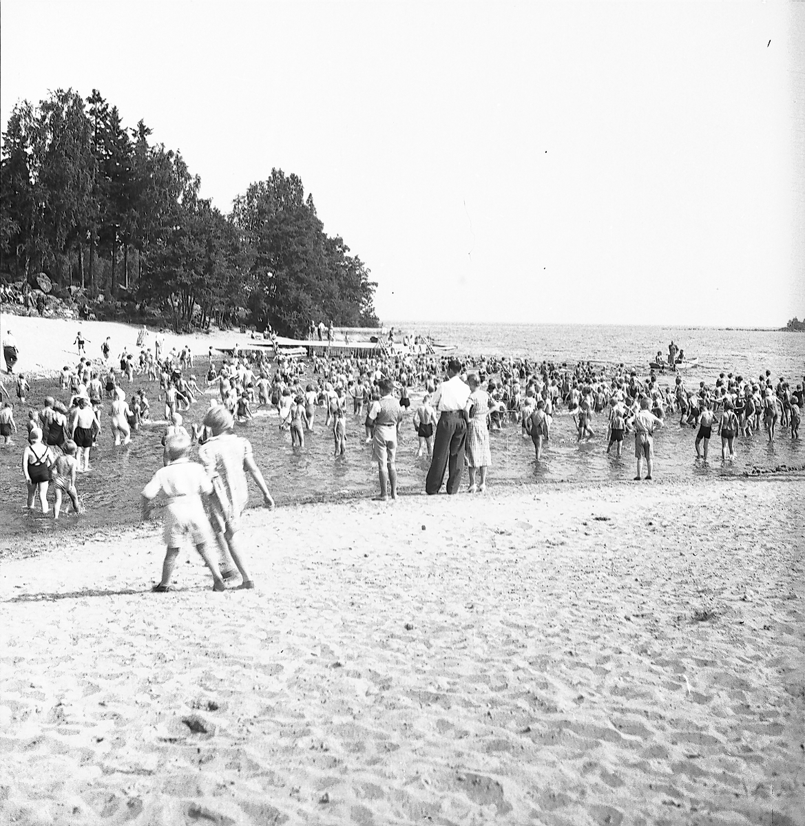Den 23 juli 1938. Barnutflykt till Furuvik. Badstranden "Sandvik". Reportage för Gefle-Posten