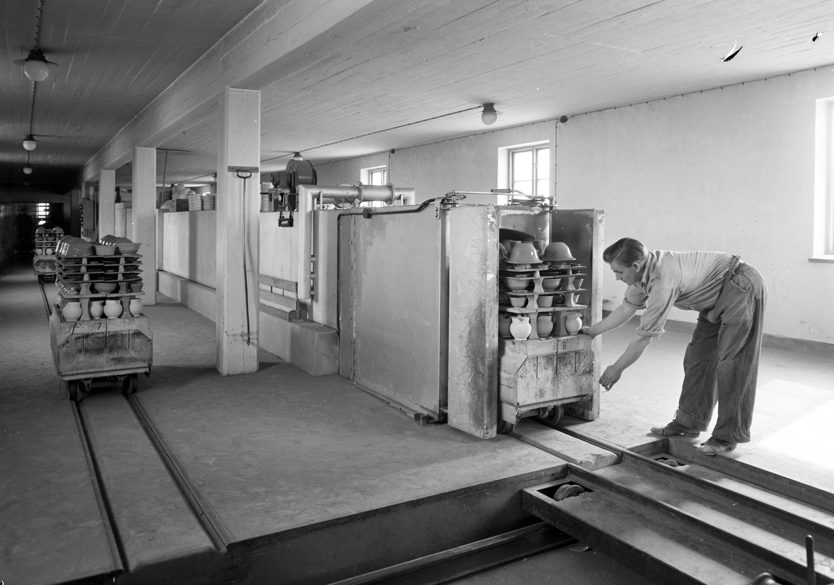 Personal i arbete, ämnen färdig för bränning.