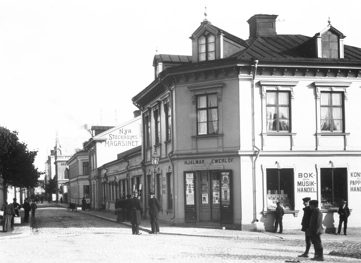 Hjalmar Ewerlöfs Musik och Bokhandel. Bilden finns publicerat i boken "Gamla Gefle framkallat" av Bertel Larsson och Helmer Viklund.