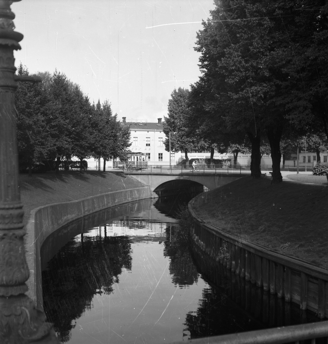 Lillån / Spårvagn. Malmbergs fabrik i bakgrunden