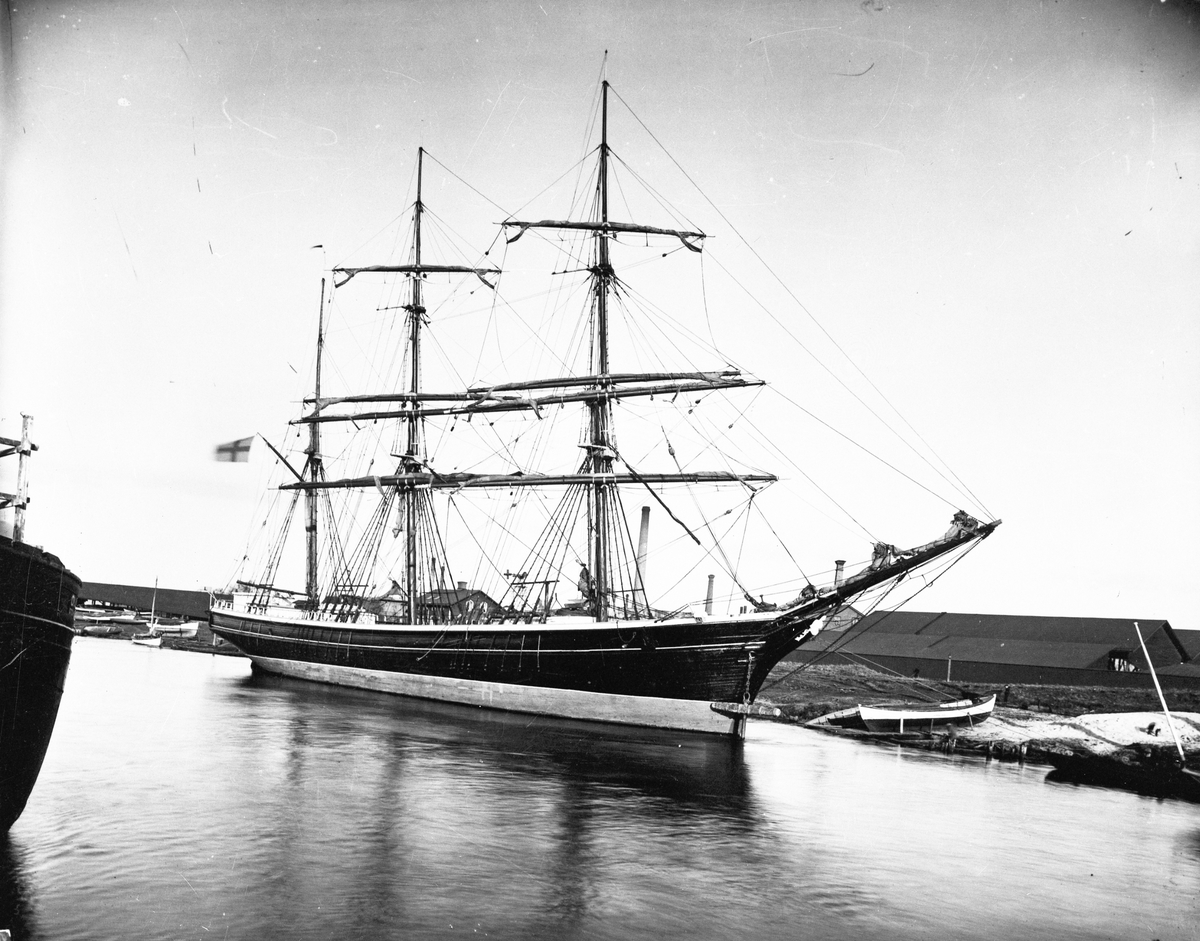 Gävlebild från Hamn. Tremastat fartyg. Juli 1953
