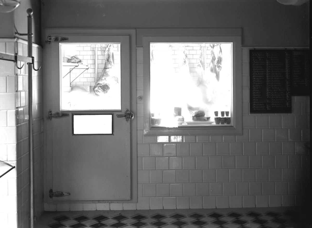 Interiör från J. Arvid Brodén kött- & Charkuteriaffär visar Frigidaire kyl