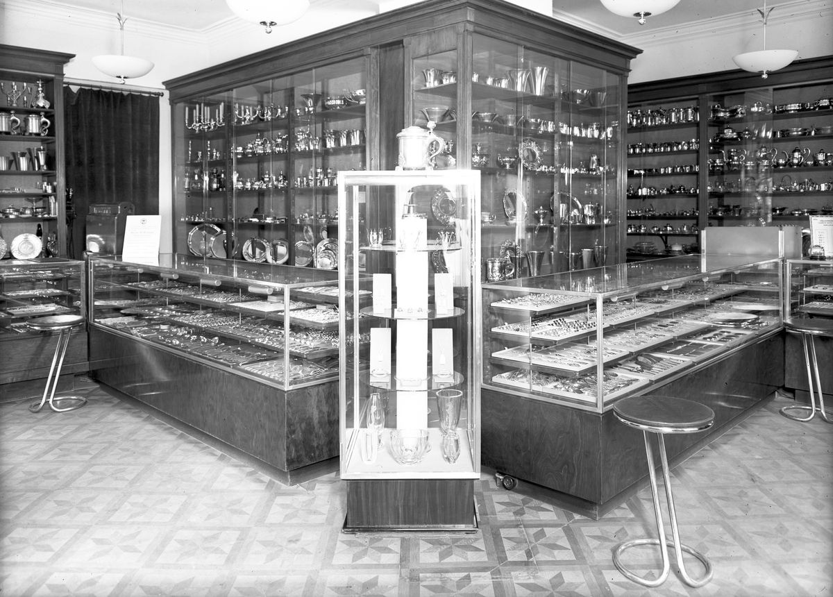 Interiör från Hovjuvelerare E. Johansson guldsmedsaffär. 5 juni 1946.