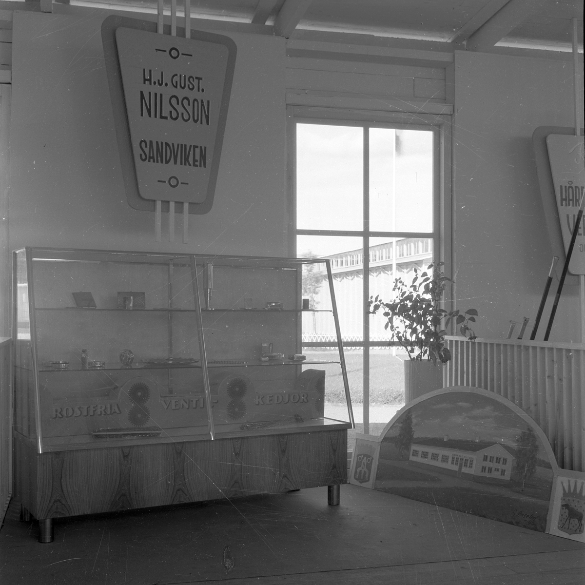 Företag från Sandviken. Utställningen på Gävletravet och Folkparken. År 1946. H. J. Gust. Nilsson, Sandviken. Verkstad som jobbar med rostfritt. Reportage för Sandvikens Tidning.
