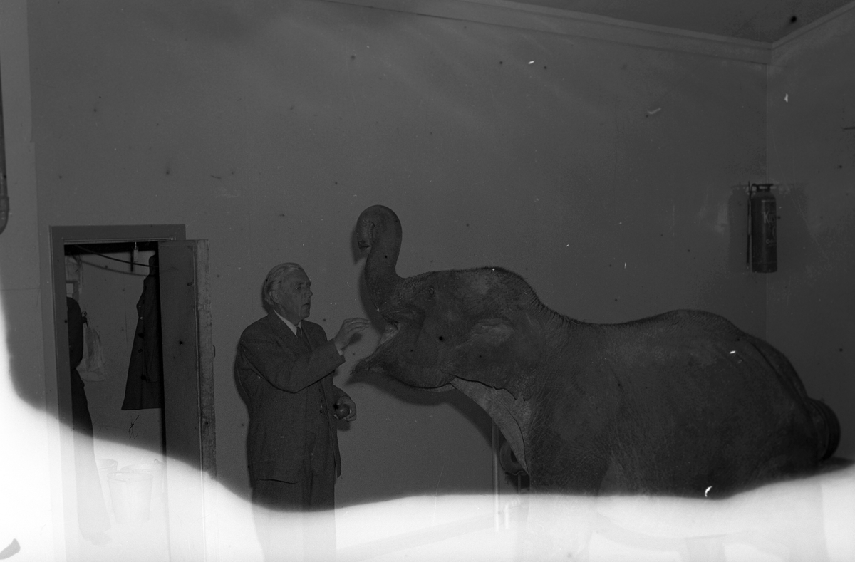 Furuviks direktör Nygren med elefanten Toby. 1947.