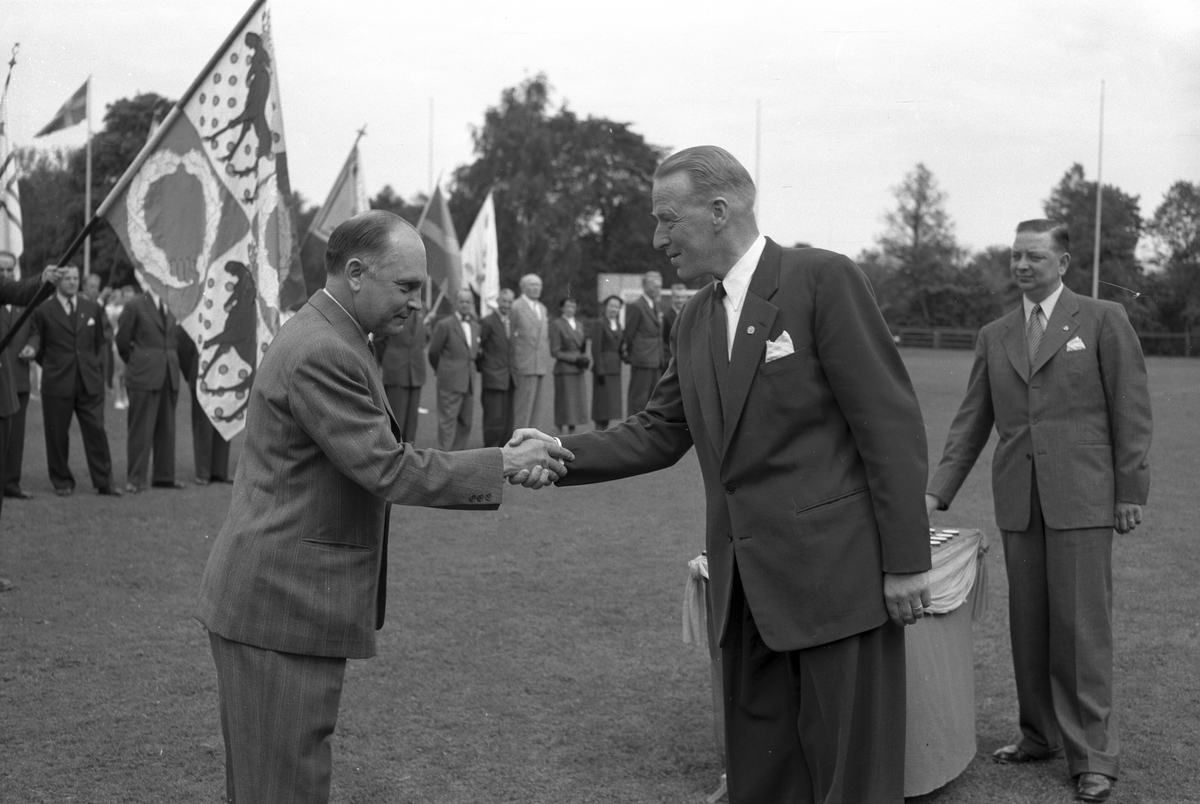 Titel: Riksidrottsförbundets medaljutdelning på Strömvallen. 7 juni 1953.