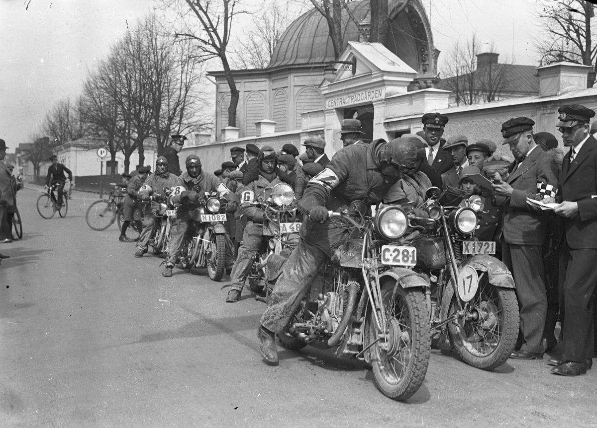Motorcykeltävling. Vid Centralträdgården (Grand Central Hotell)