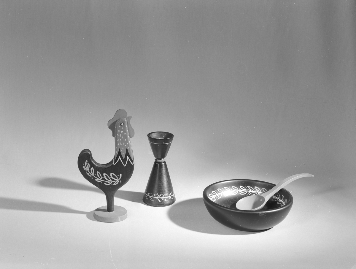 Titel: Skål, sked och tupp i trä. Den 18 oktober. Ahrnebergs