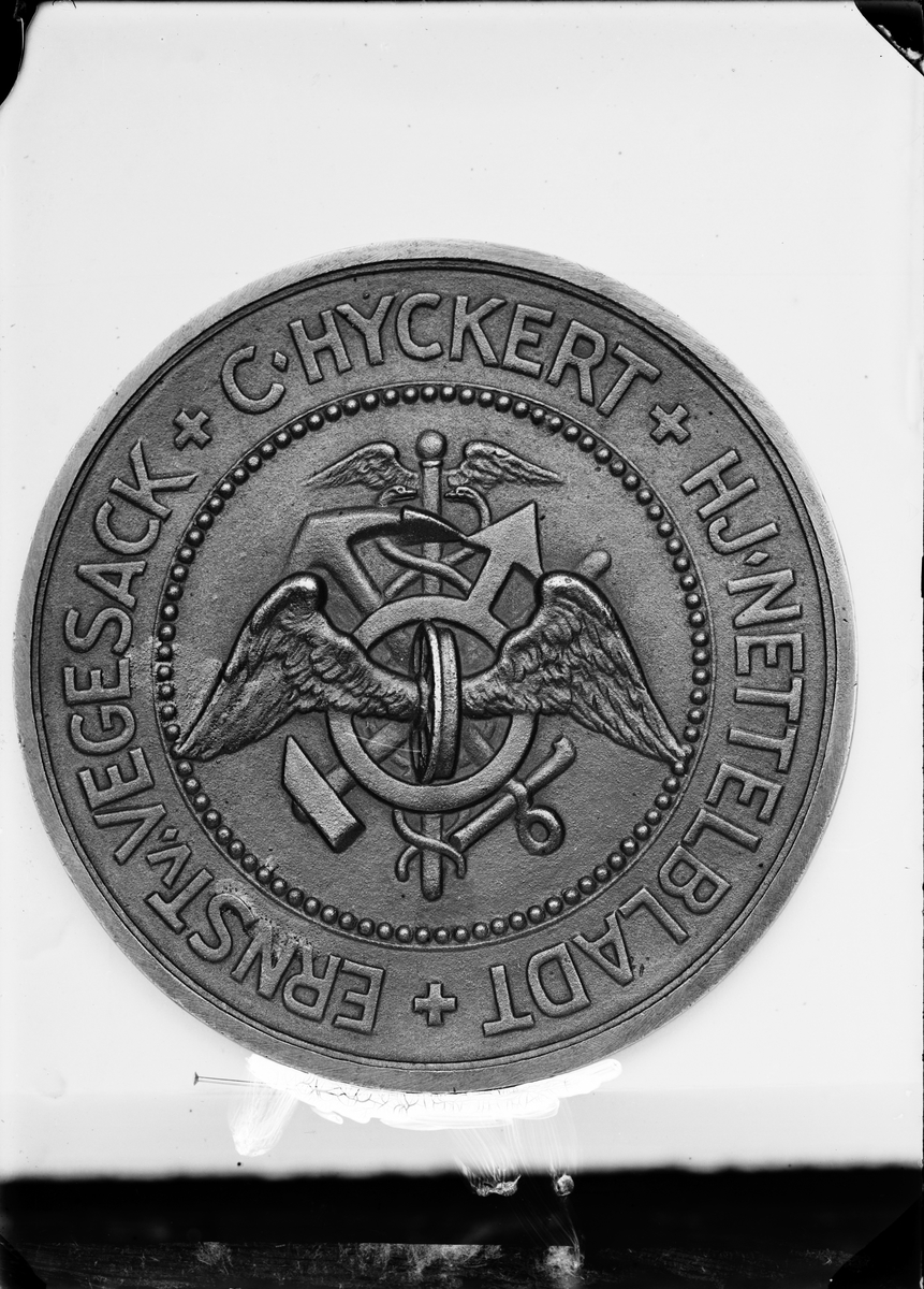 Medalj med text: C. Hyckert. H J Nettelbladt. Ernst Vegesack.