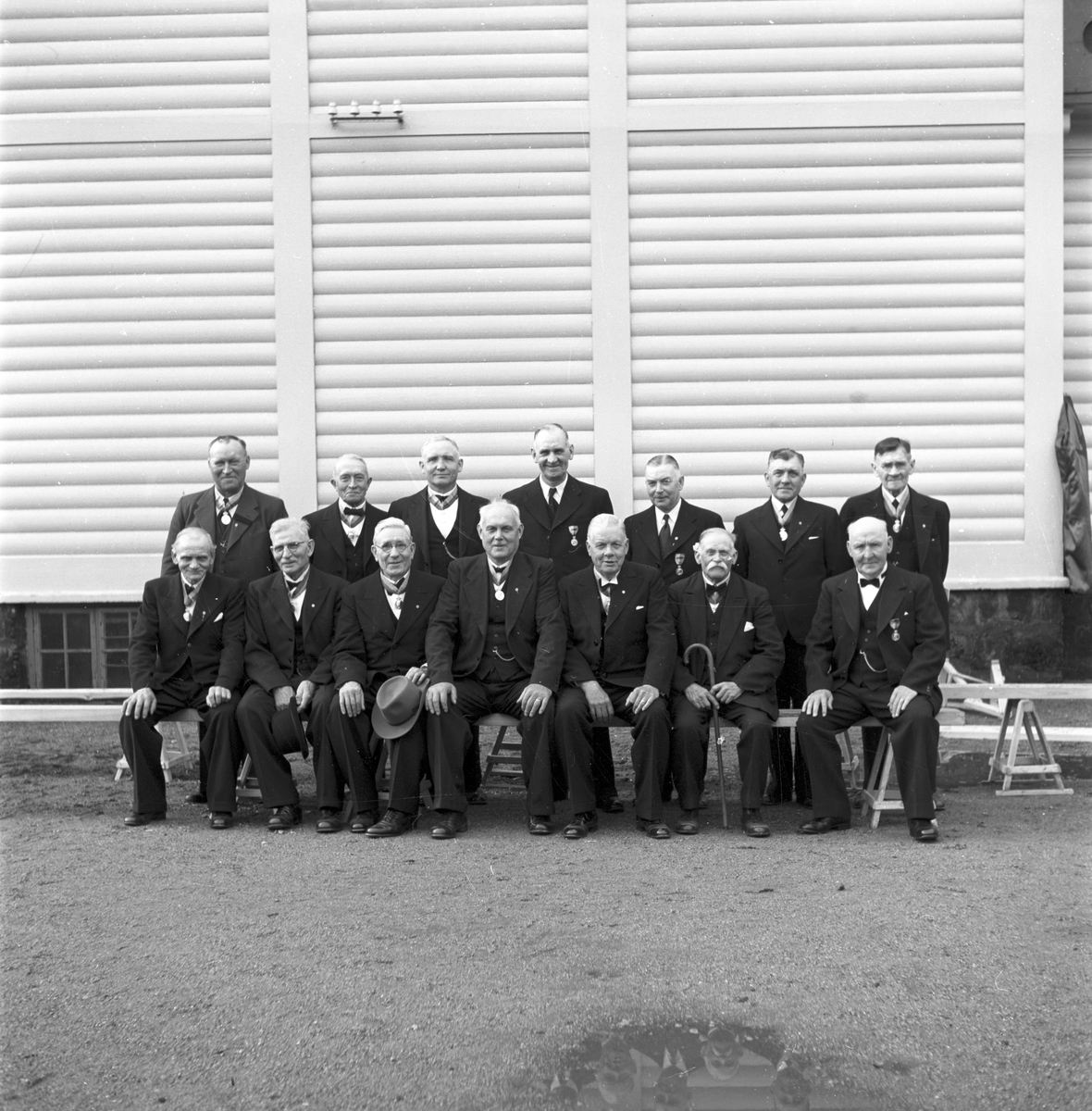 SEEFAB Sandviken 1895-1945 firar 50-års jubileum med middag. Juni 1945. SEE Fabriks Aktiebolag tillverkar olika slags stålrör. SEEFAB upptog bågtillverkning och fortsatte med stålrörspilar. Jämsides med dessa sportartiklar framställer fabriken hoppstavar, hoppribbor, spjut, flugspön, golfklubbor och hästpoloklubbor alla av välkänd kvalitet och väl lämpade för export. År 1945 har SEEFAB cirka 700 anställda.
