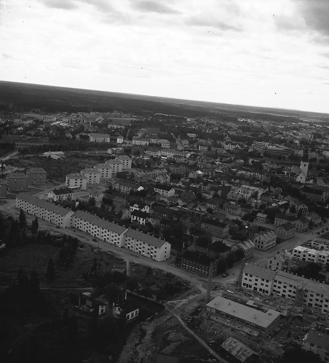 Flygbild över Brynäs med Staffans kyrka. År 1940.