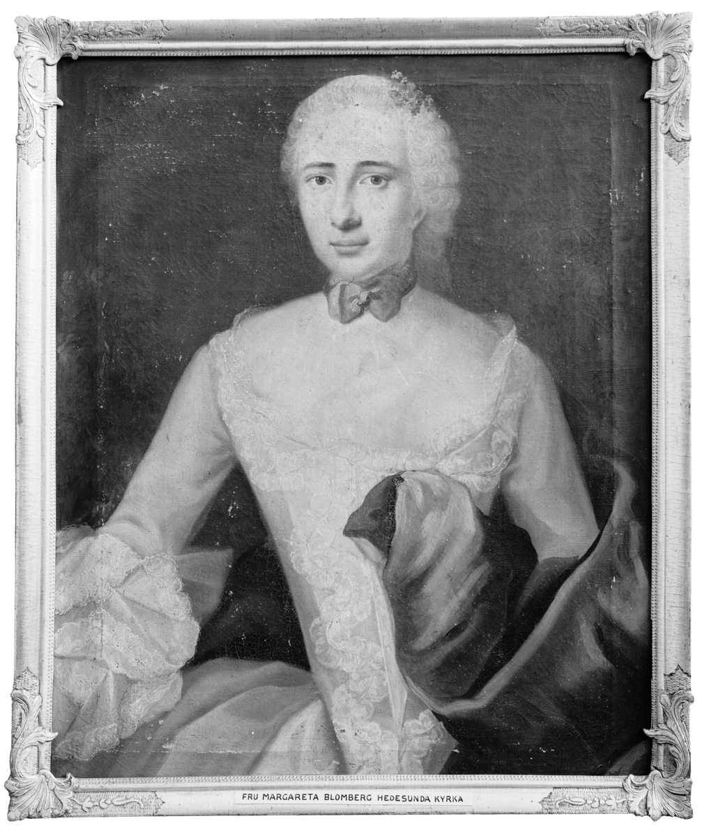 Tavla av Fru Margareta Blomberg, Hedesunda kyrka. Riksdagsman A. Hilding. Den 10 mars 1942
