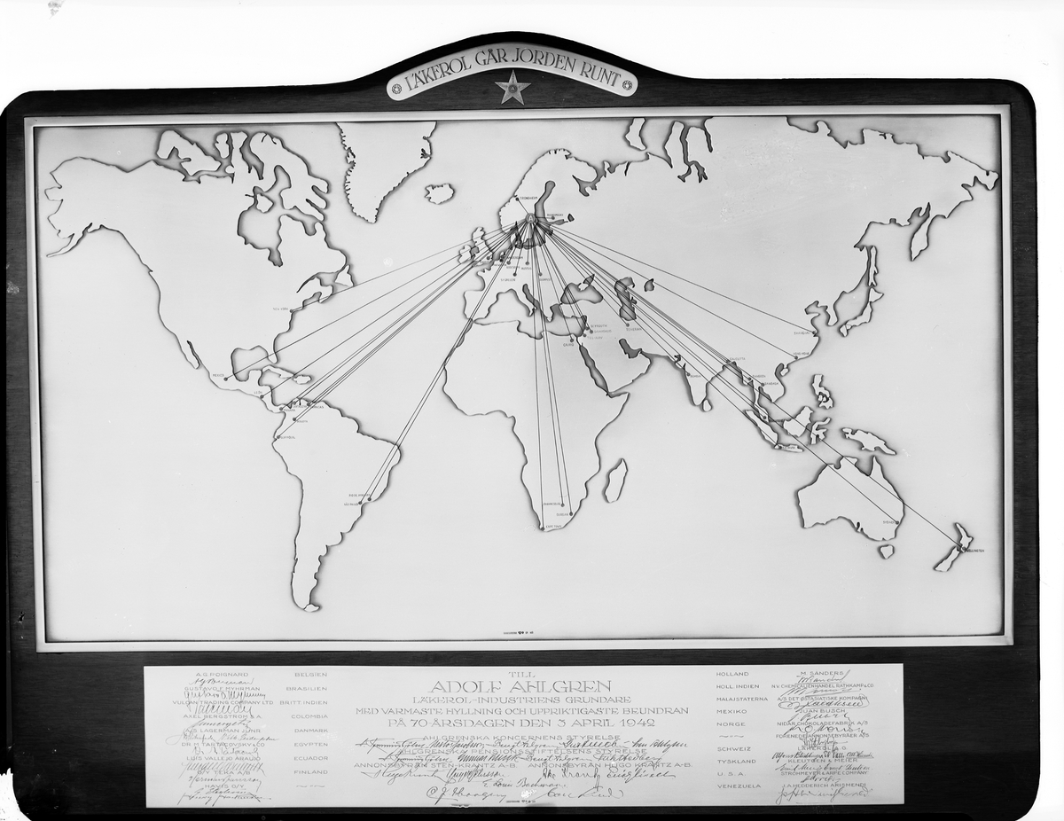 Plakett till Läkerols direktör Adolf Ahlgrens 70-årsdag. Av Hovjuveleraren Jos. A. Johansson. Den 4 april 1942.