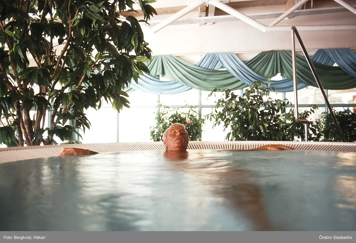 Besökare i simassäng i Gustavsvik, 1989