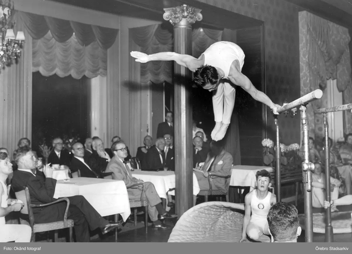 Journalister besöker gymnastikuppvisning, 1954