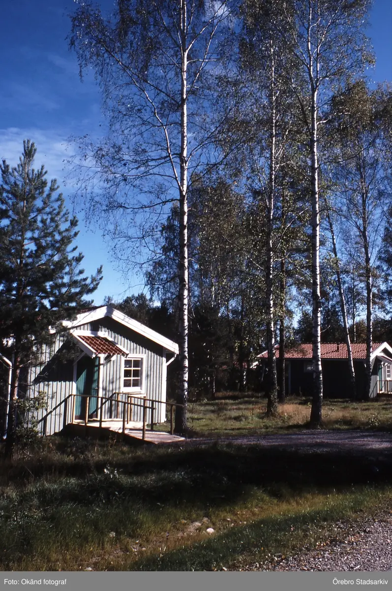 Två blå fritidshus i Hampetorps stugby, 1980-tal
