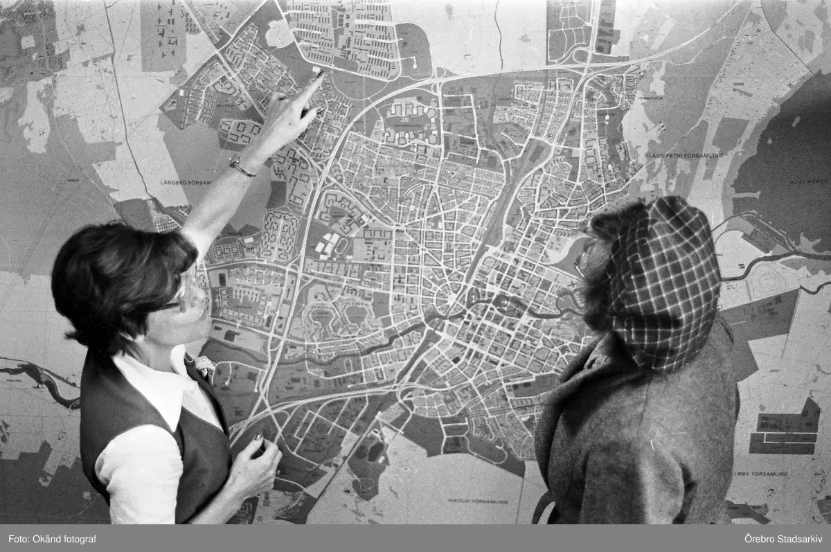 Visning av Örebrokarta på turistbyrån, 1970-tal