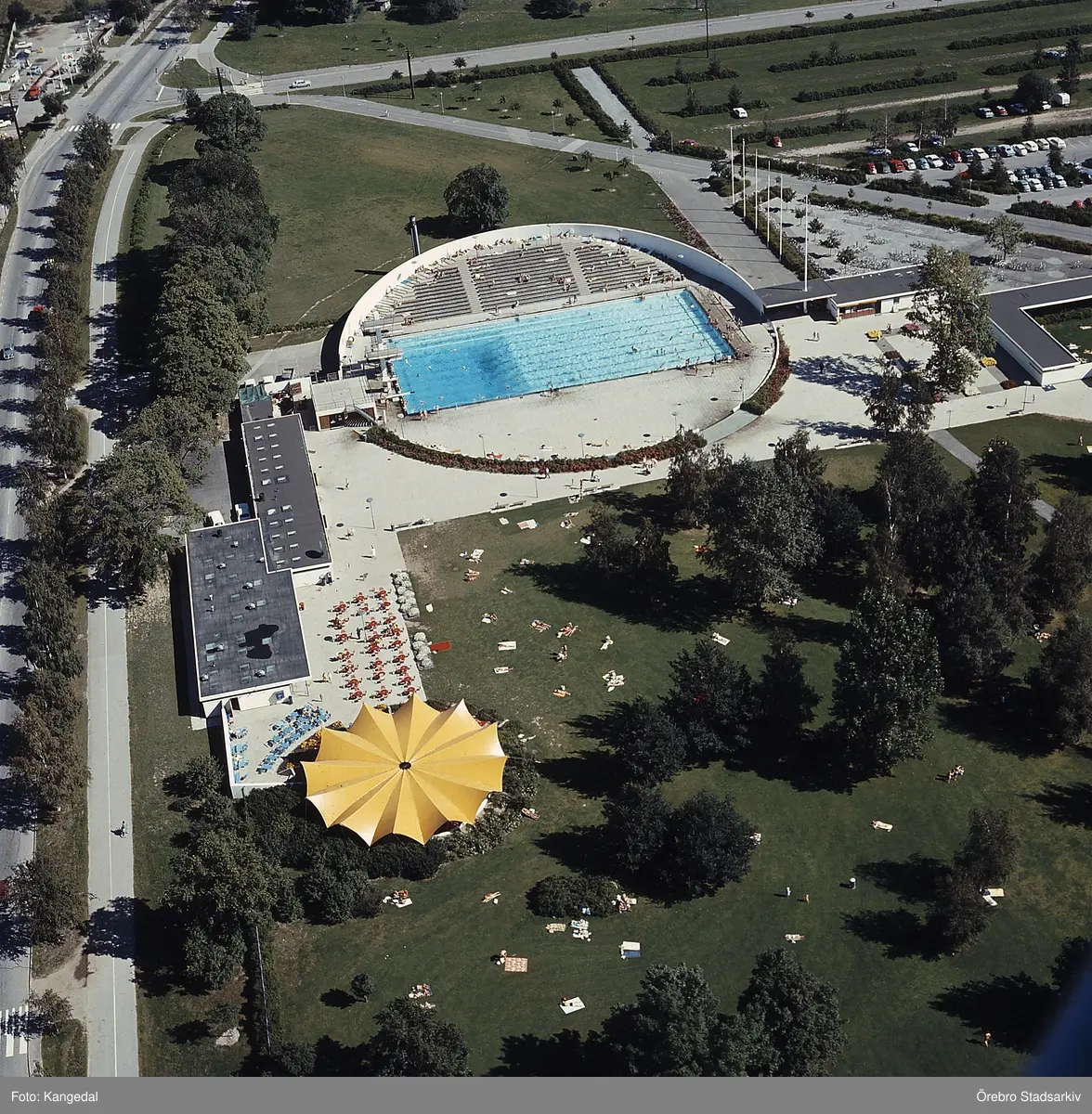 Flygfoto över Gustavsviksbadet, 1980-tal
