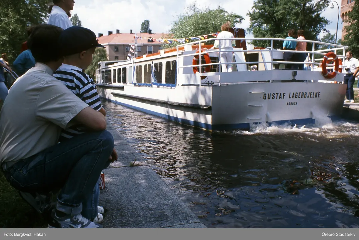 Båten Gustaf Lagerbjälke från Arboga ankommer till Örebro, 1989