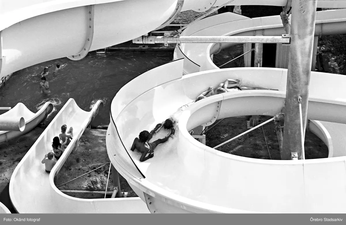 Vattenrutchbana snirklar sig runt på Gustavsviksbadet, 1985