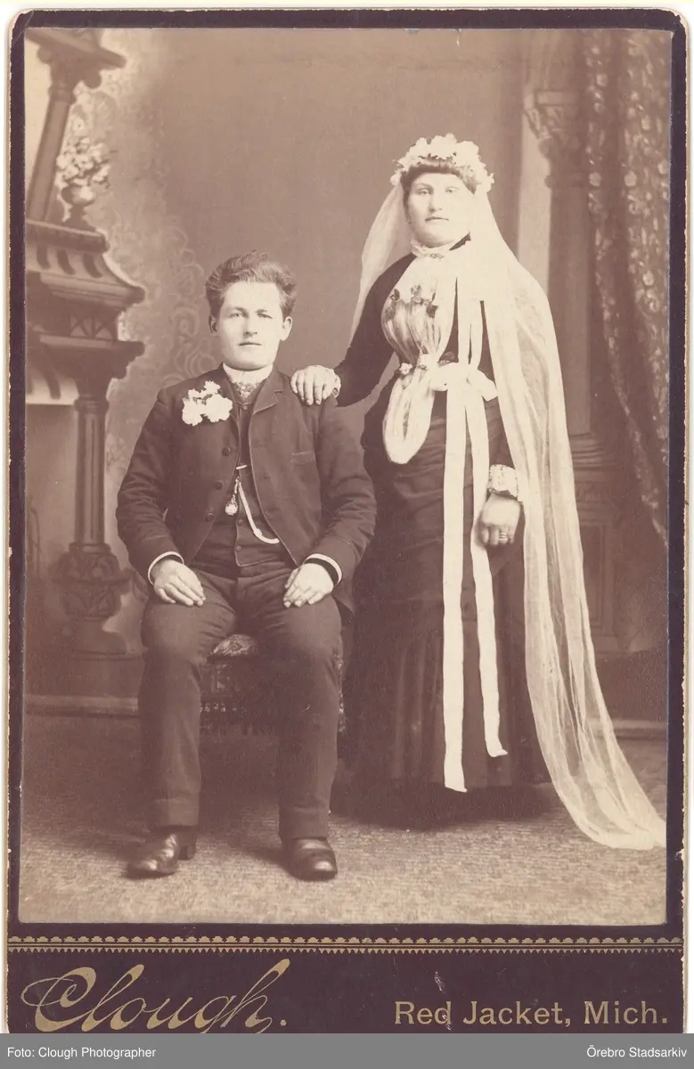 Bröllopsfoto på emigranten Israel Larson och Minnie Gustafson