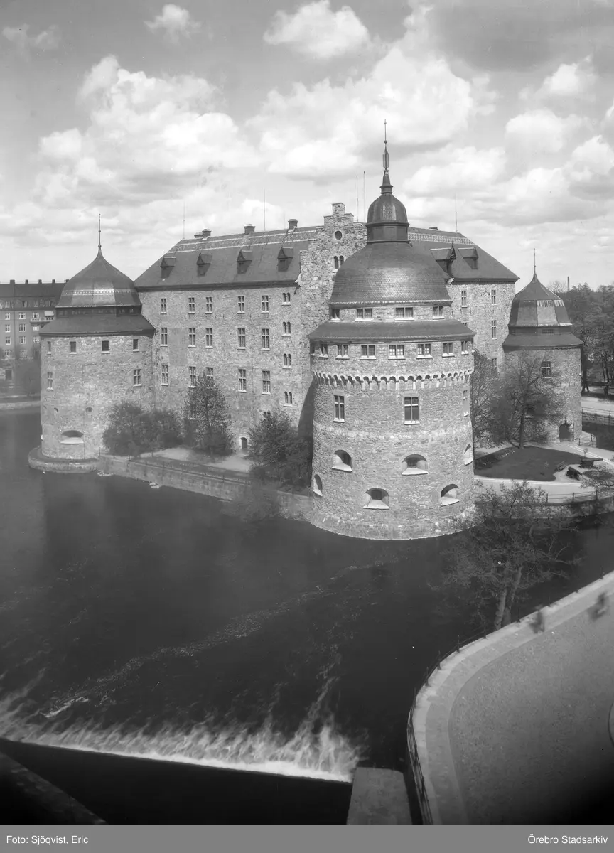 Örebro Slott sett från Fenixhusets tak, 1930-tal