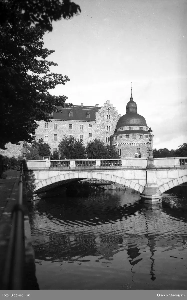 Örebro slott och storbron sett från Norra Strandgatan, 1930-tal
