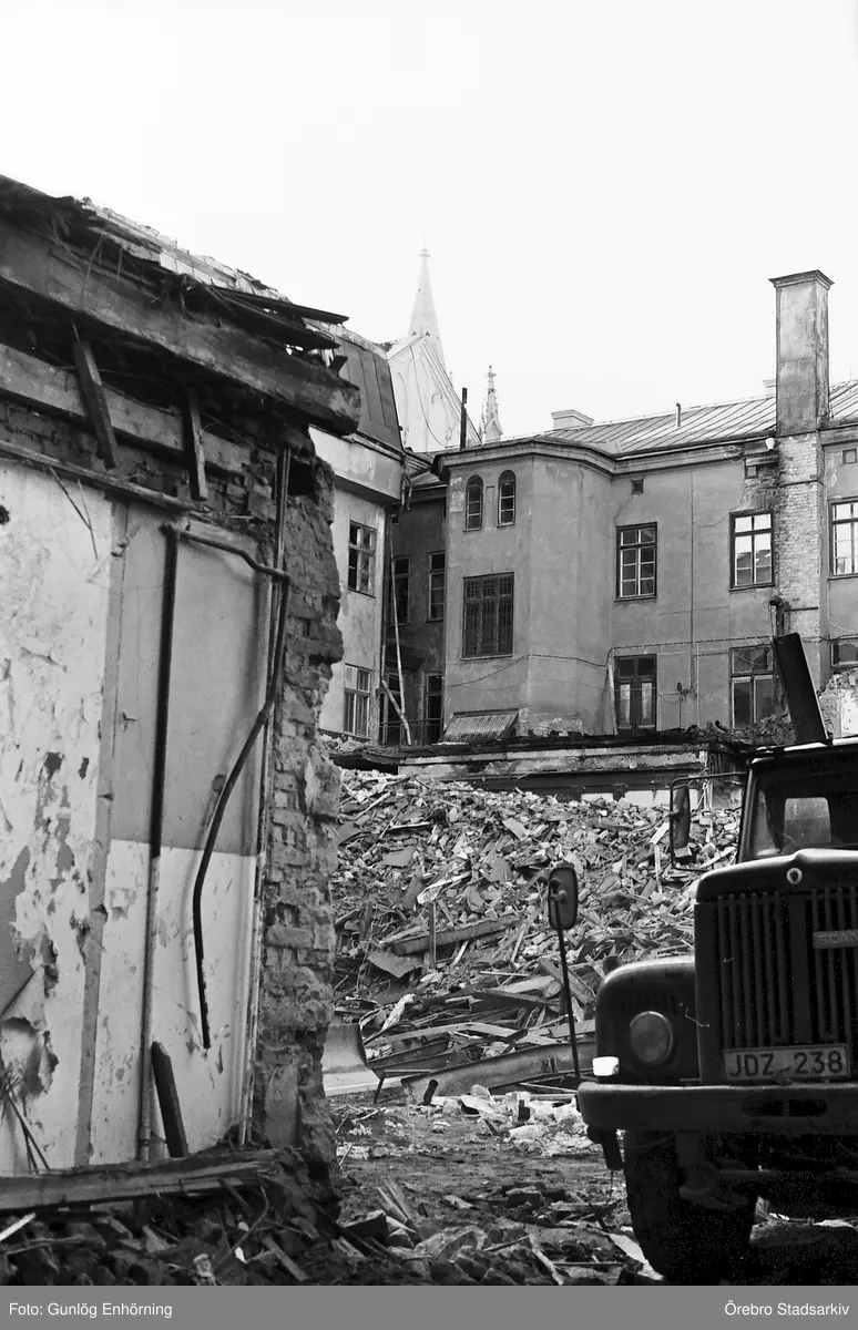 Rivningsmassa täcker gården på fastigheten Köpmangatan 4, 1985