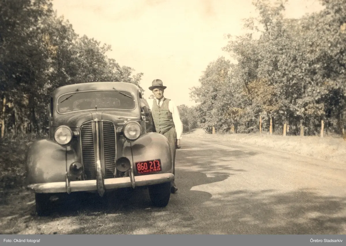 Emigranten Ivar Lundeen vid sin bil 1940-tal i USA