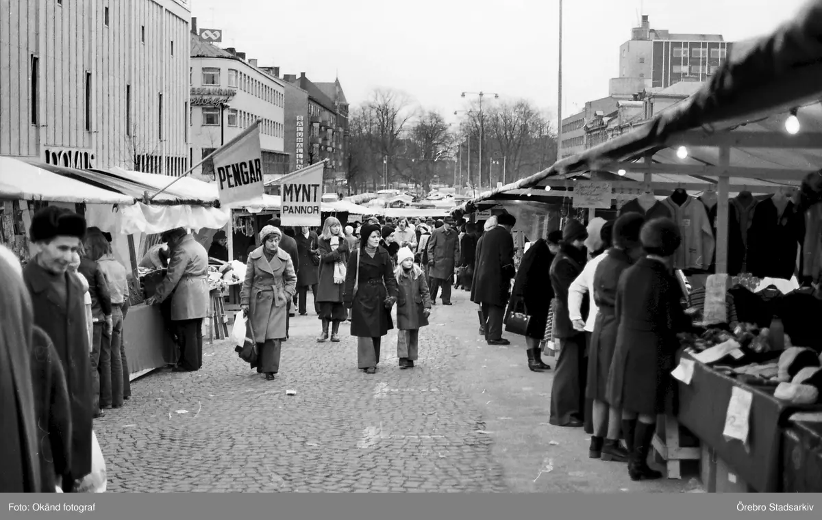 Många försäljare på Hindersmässan på Stortorget, 1970-tal