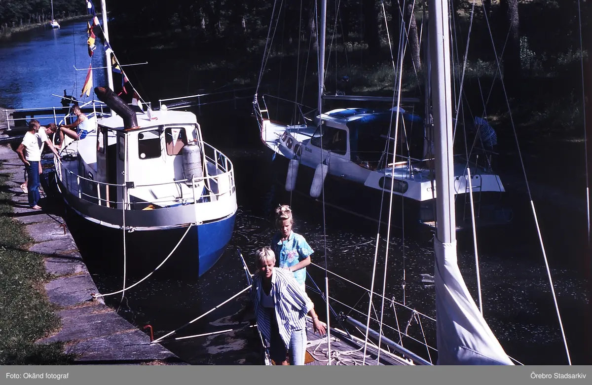 I kö för slussning på Båtens dag i Örebro 1980-tal