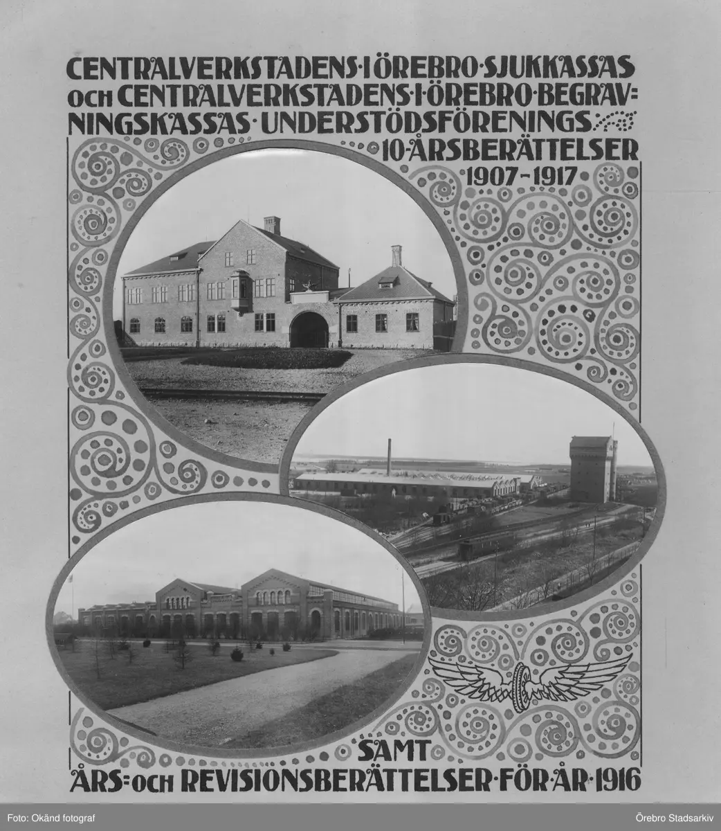 Omslag till Centralverkstadens i Örebros sjuk- och begravningskassas understödsförenings 10 årsberättelser, 1917