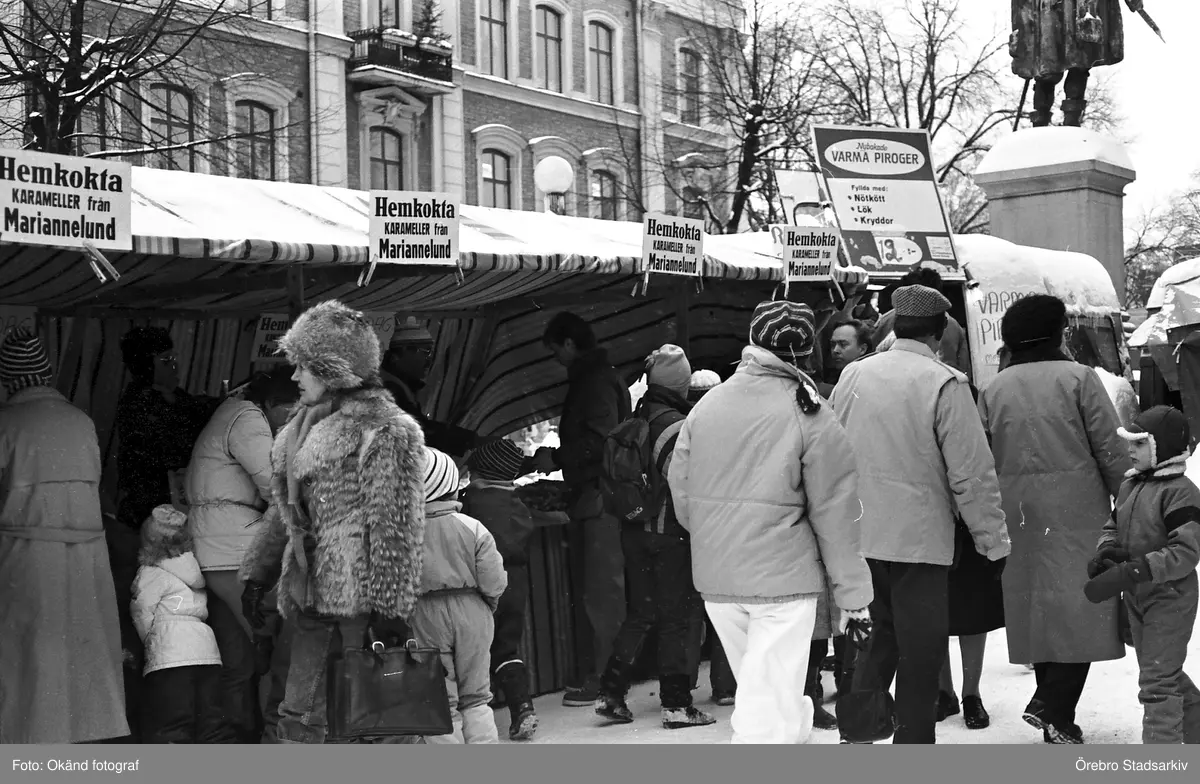 Karameller och piroger säljs på Hindersmässan, 1985