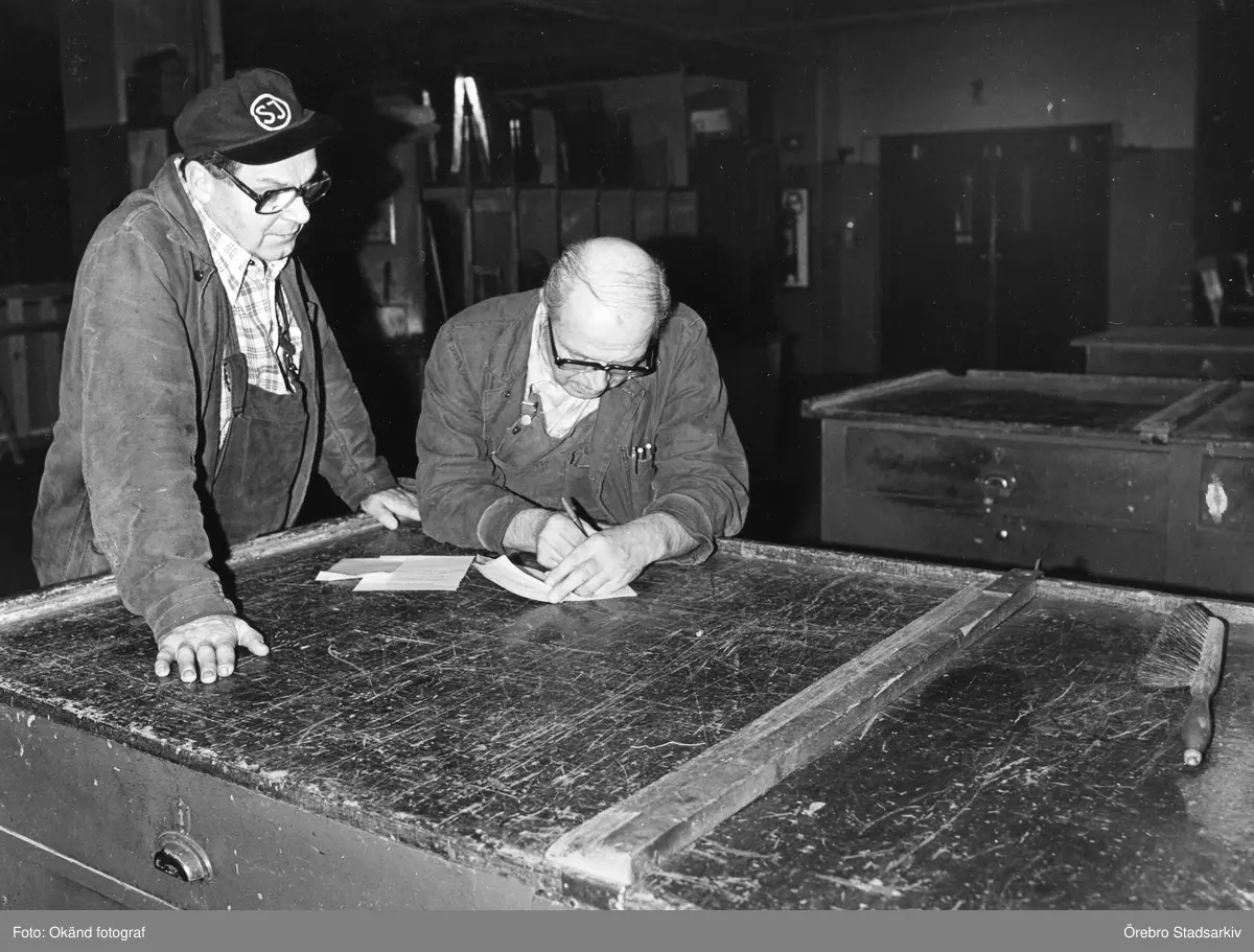 Larsson och Jämthed vid arbetsbord på Centralverkstäderna, 1970-tal