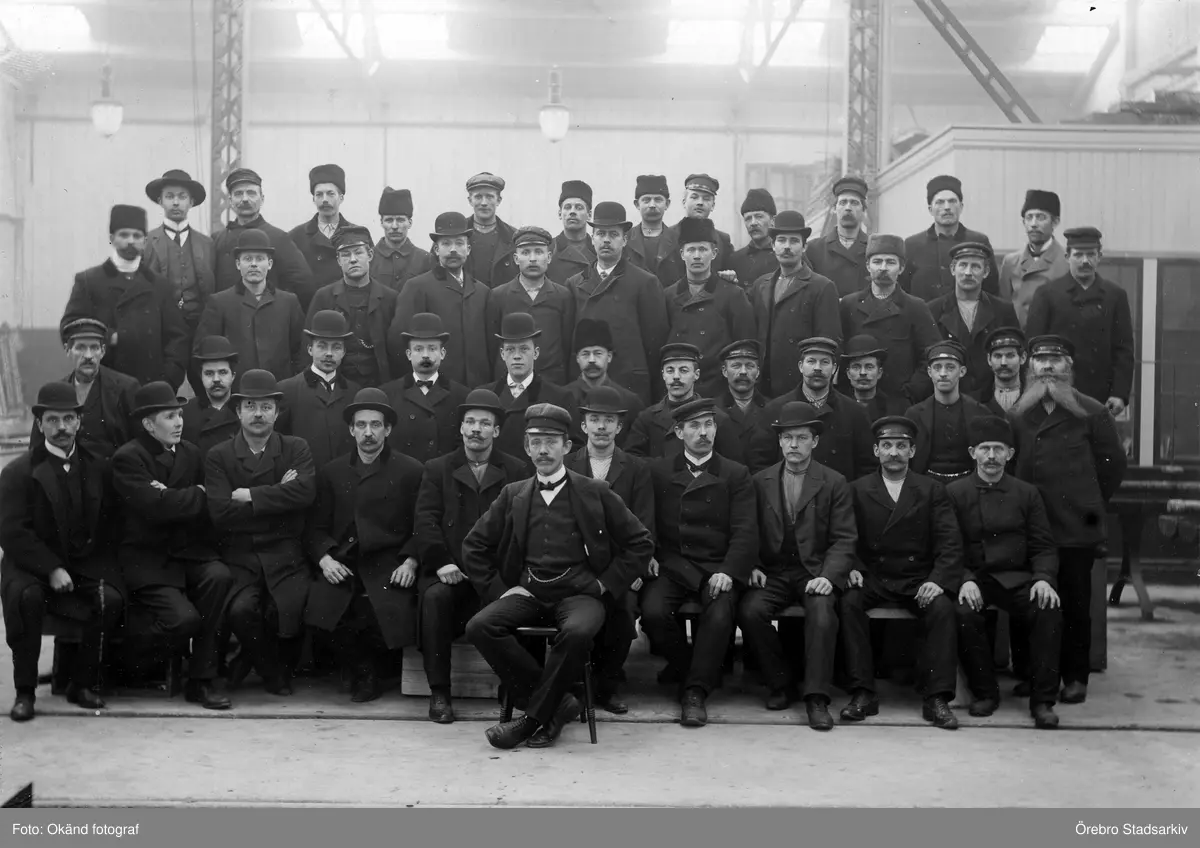 Uppklädda arbetare på Centralverkstäderna, våren 1909