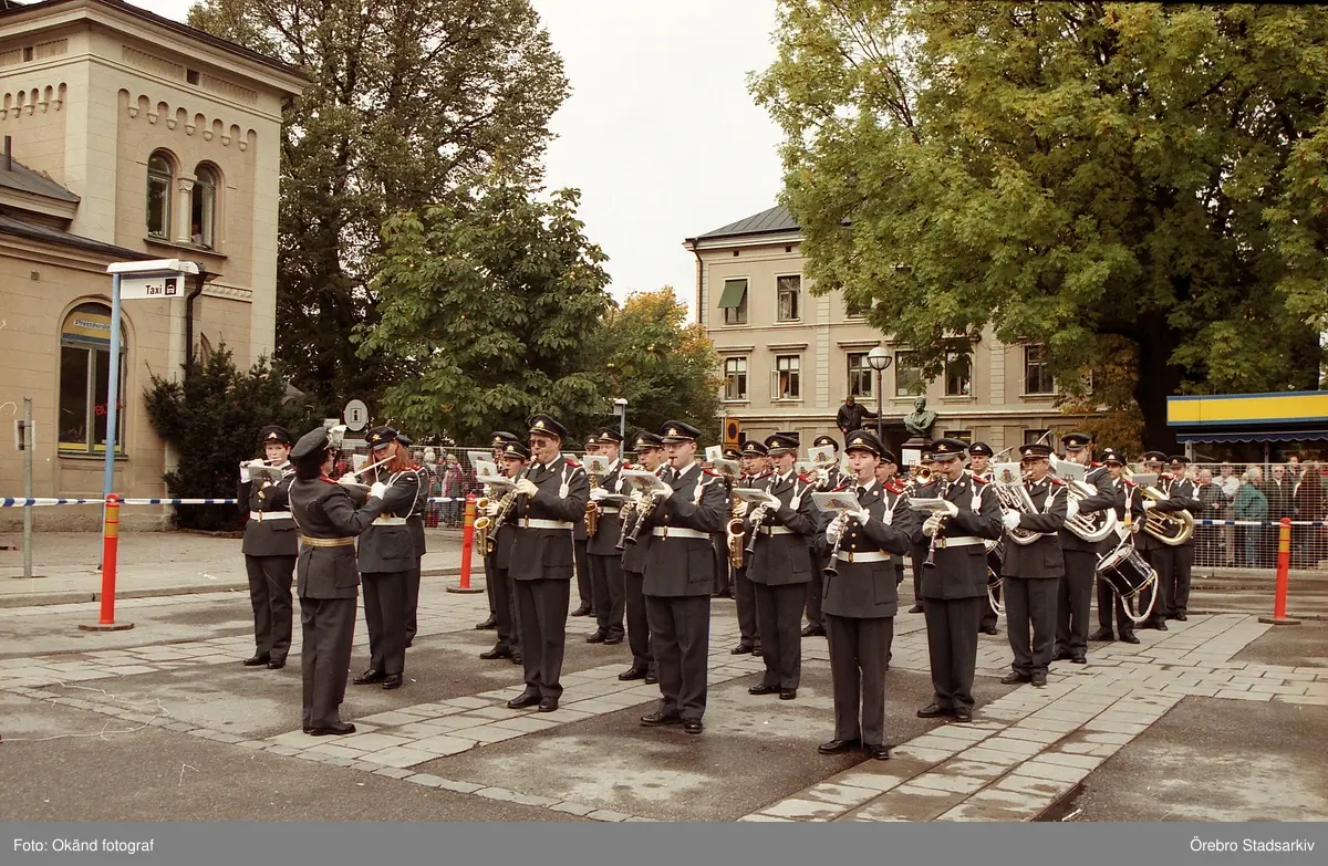 Militärens musikkår spelar vid invigningen av Mälarbanan, 1997-10-13