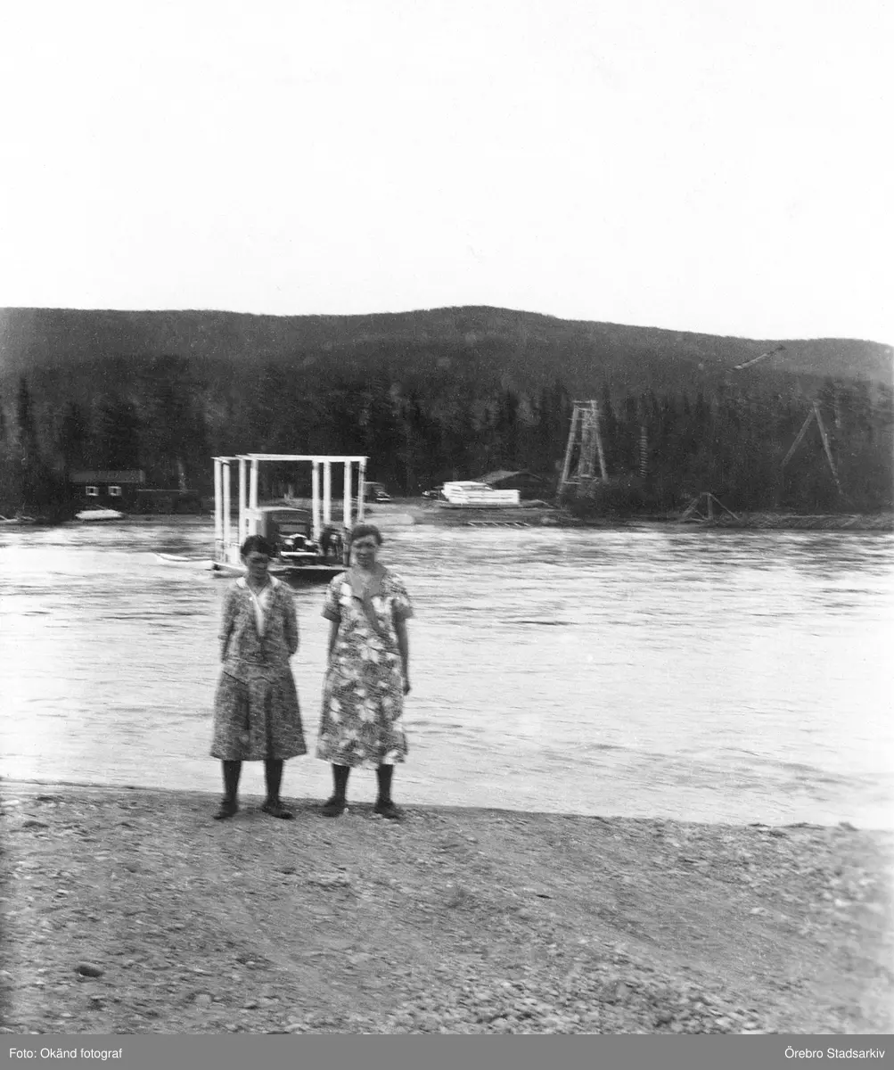 Systrarna Mary och Rika Jakobsson vid bilfärjan över Tatana i Big Delta, Alaska, 1932
