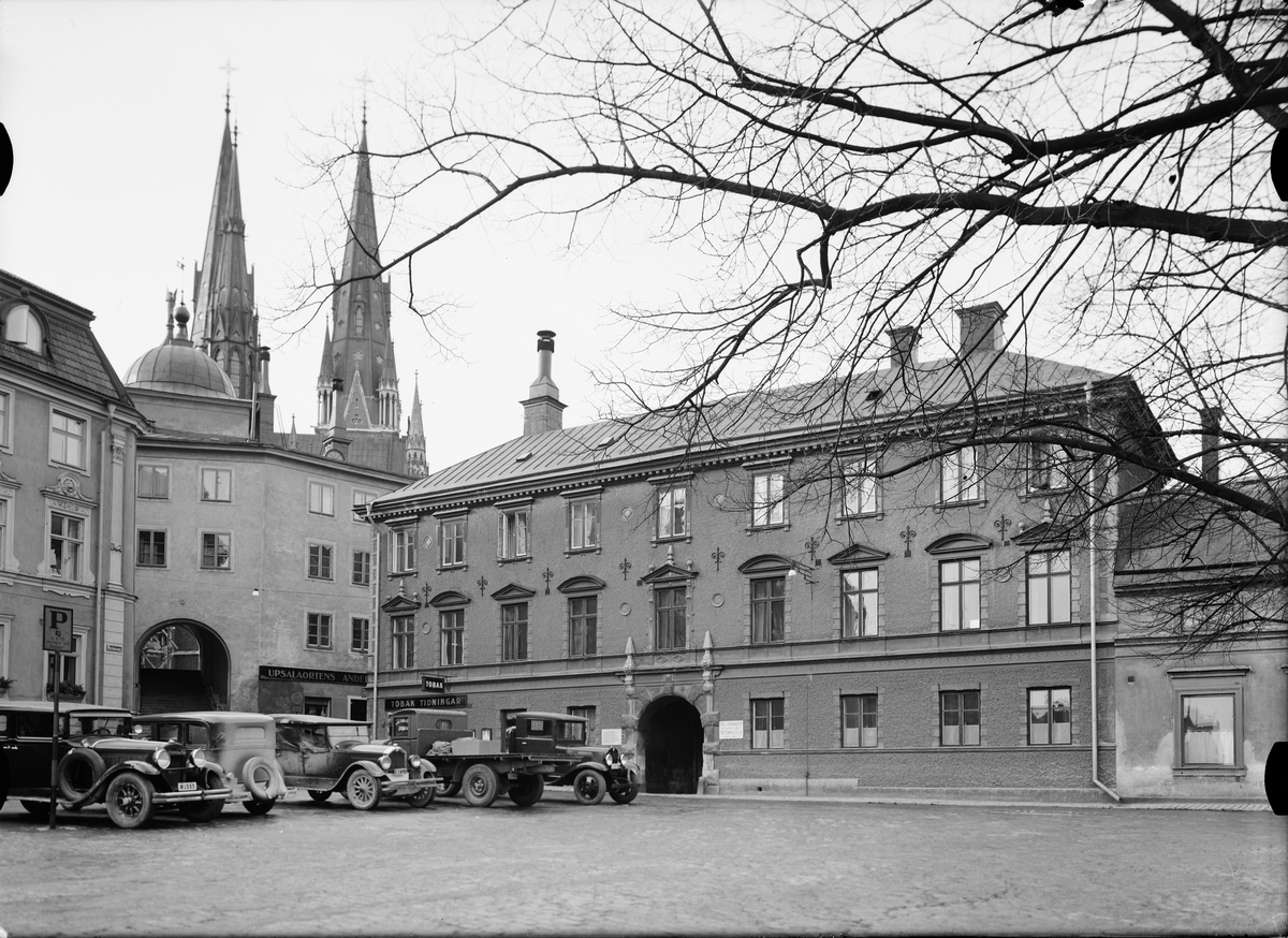 Gillbergska huset, Fyristorg, Uppsala innan Genomfarten byggdes, februari 1934