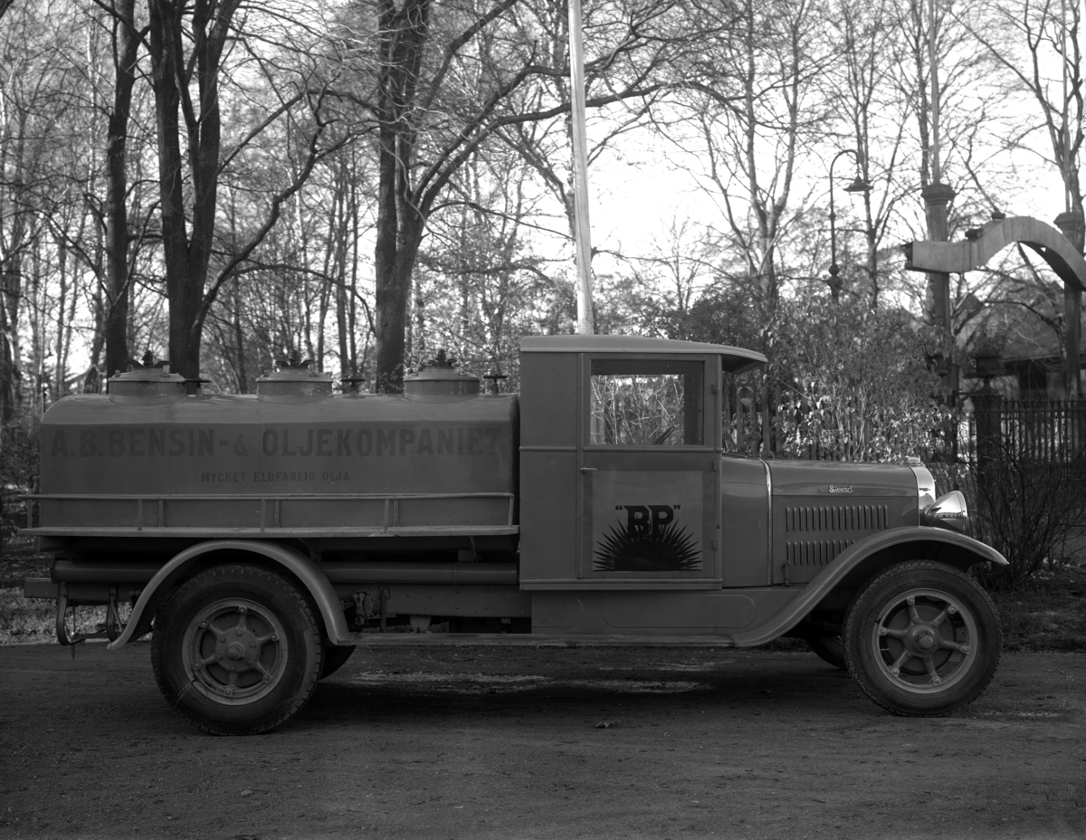 Tankbil på Trädgårdsgatan i Viken. Bilden tagen runt 1930.