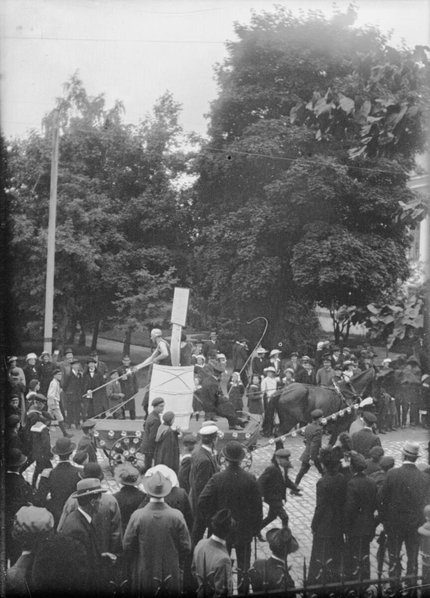 ""Badande herrar" i karnevalståget 1916. 1/25 s. f.8. 3/9 1916, 13:35. Starkt mulet. Imperial."