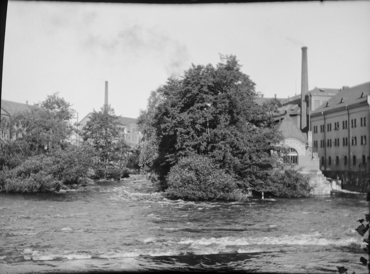 "Motiv II från Motala ström i Norrköping. 1/25 s. f.8, 1/8 1916, 08:00, sol. Stölma."