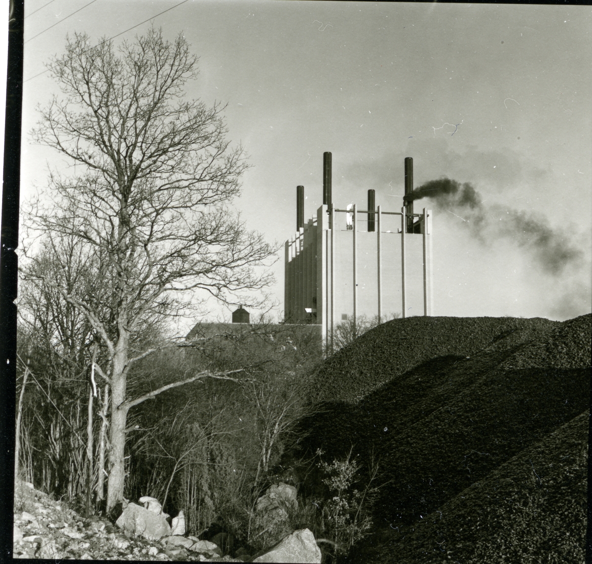 Kraftvärmeverket med kolhögar, c:a 1963.